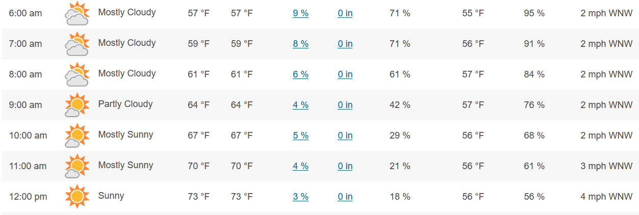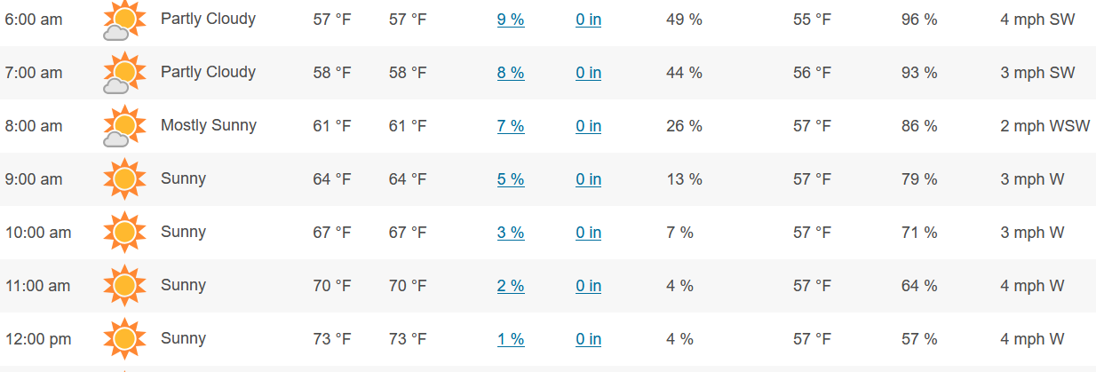 Here’s the updated weather forecast for the women’s and men’s races. Both days are now looking to have very friendly conditions in terms of temperature, wind and precipitation. This close in the forecasts ought to be pretty accurate.