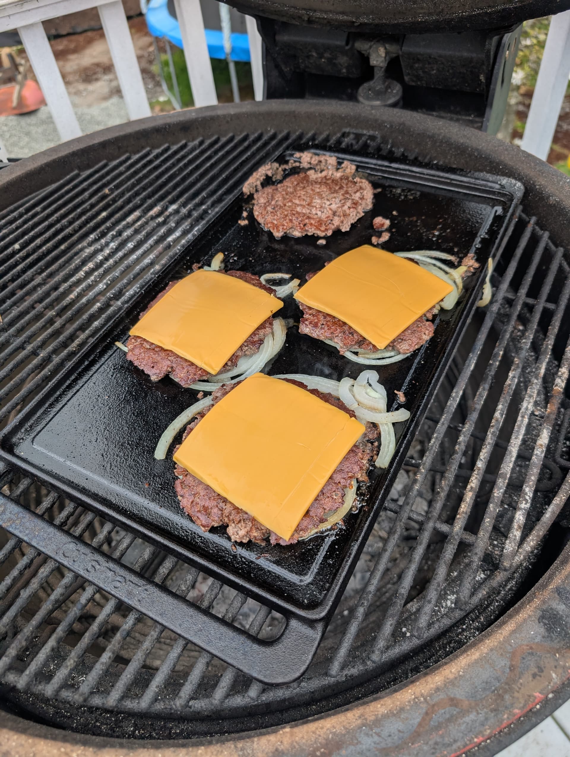 Pretty much the only difference between your burgers and mine is that you remembered to put cheese on yours and I didn’t.