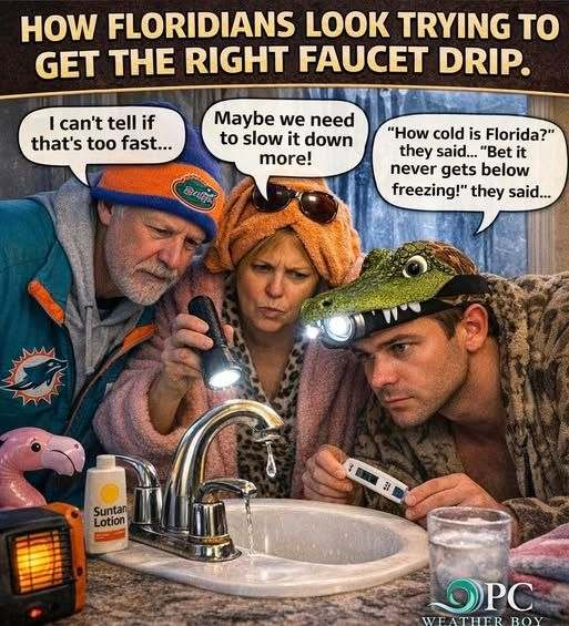 I’m in Jacksonville, FL and our pipes froze last night for the first time since we moved here in 2009.