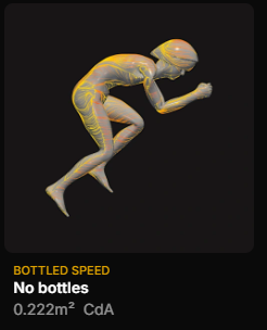 This position is on the other end of the extreme in terms of aero positions: Pad stack is 9cm lower, the head is dropped in front of the body. This position is much closer to what one would see in a pure time trialist. The CdA difference is substantial. With the much flatter torso we would expect less lift and less induced drag, so we would also expect less value from the behind the seat bottles, so lets see if our theory is confirmed: