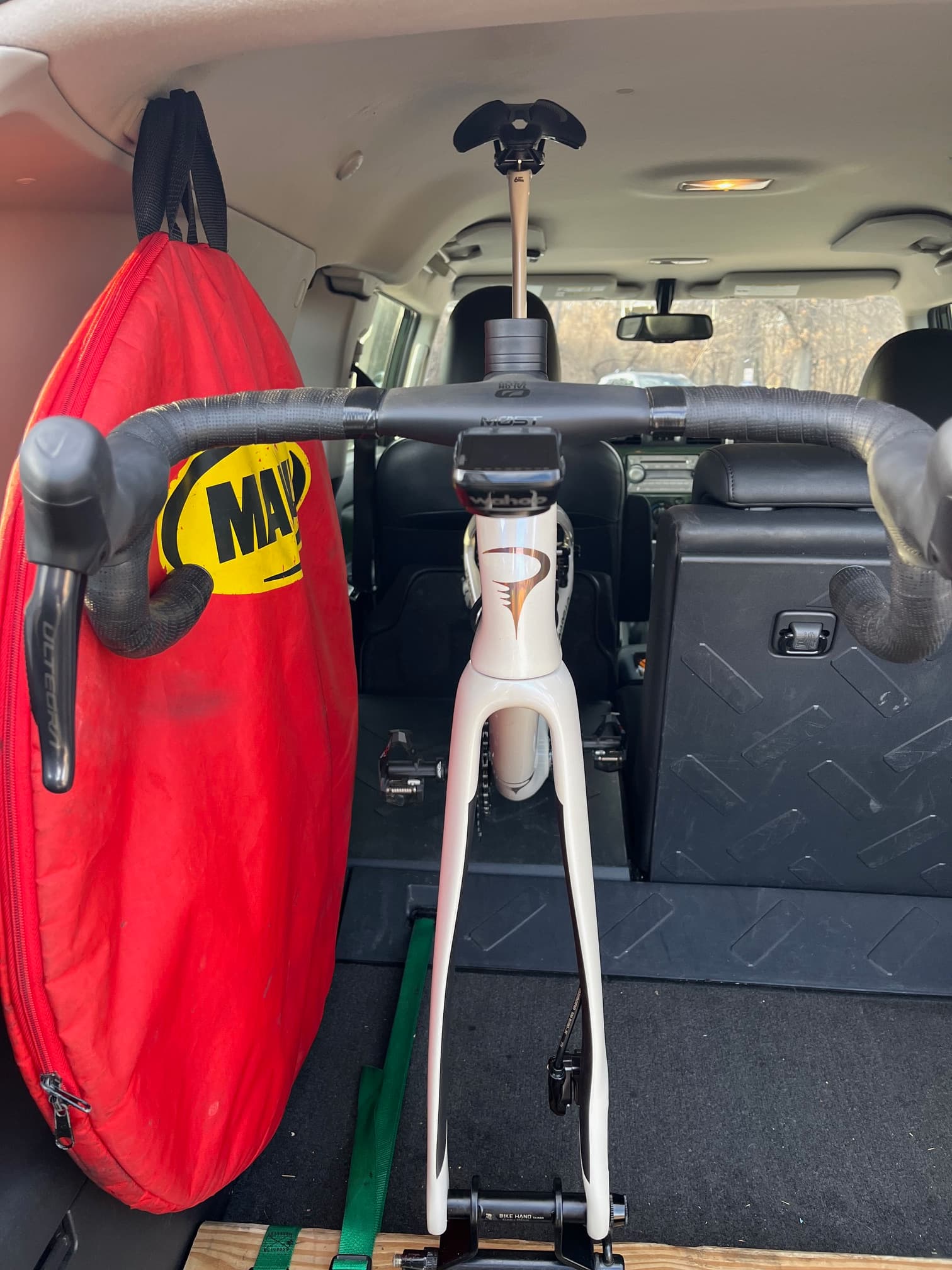 And I like someone else has a car tailored to their bike - I went around with a tape measure and was the single criteria for my car purchase. Could wheel in my roadbike with both wheels on. Tri bike could fit too until I put the Fast TT bars on that sit higher. So am now considering a swap from the Pajero/Shogun to a Defender.