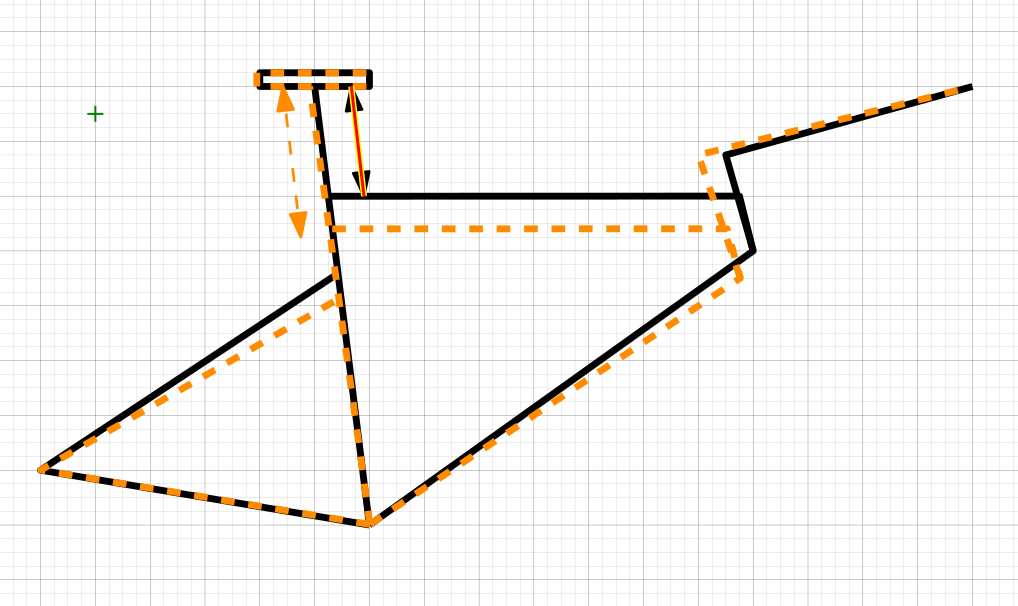 Here orange and black achieve exactly the same saddle position with respect to the bb and by having a longer aerobar at the front the same reach is achieved as well. The main difference here is that ugly tricks are necessary to achieve orange, whereas on the black frame no reach extenders are necessary. Would your argument go to the green setup?