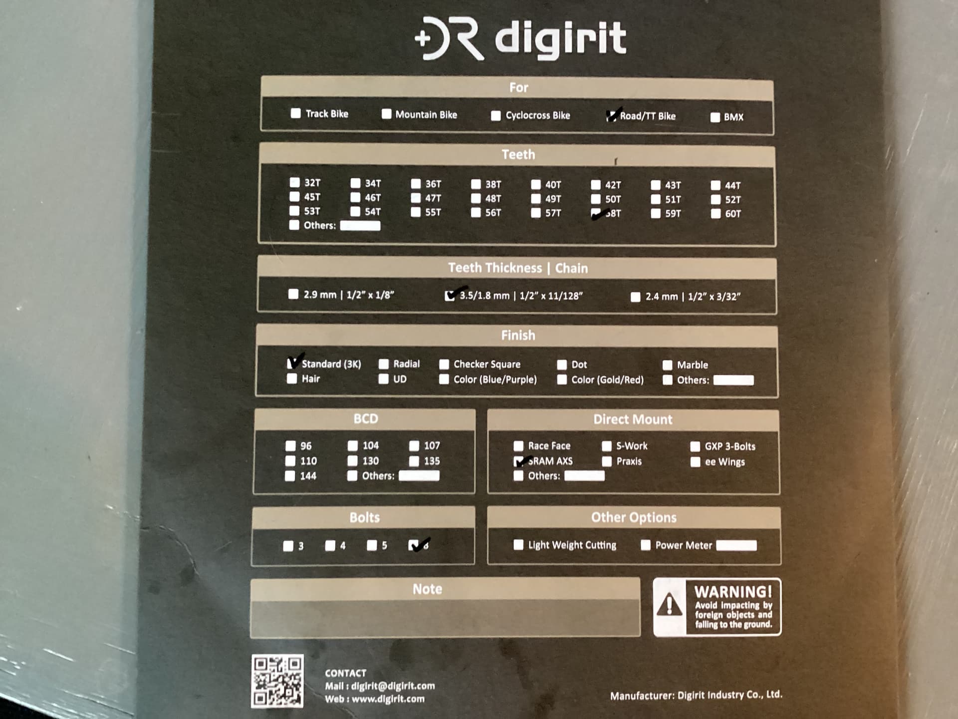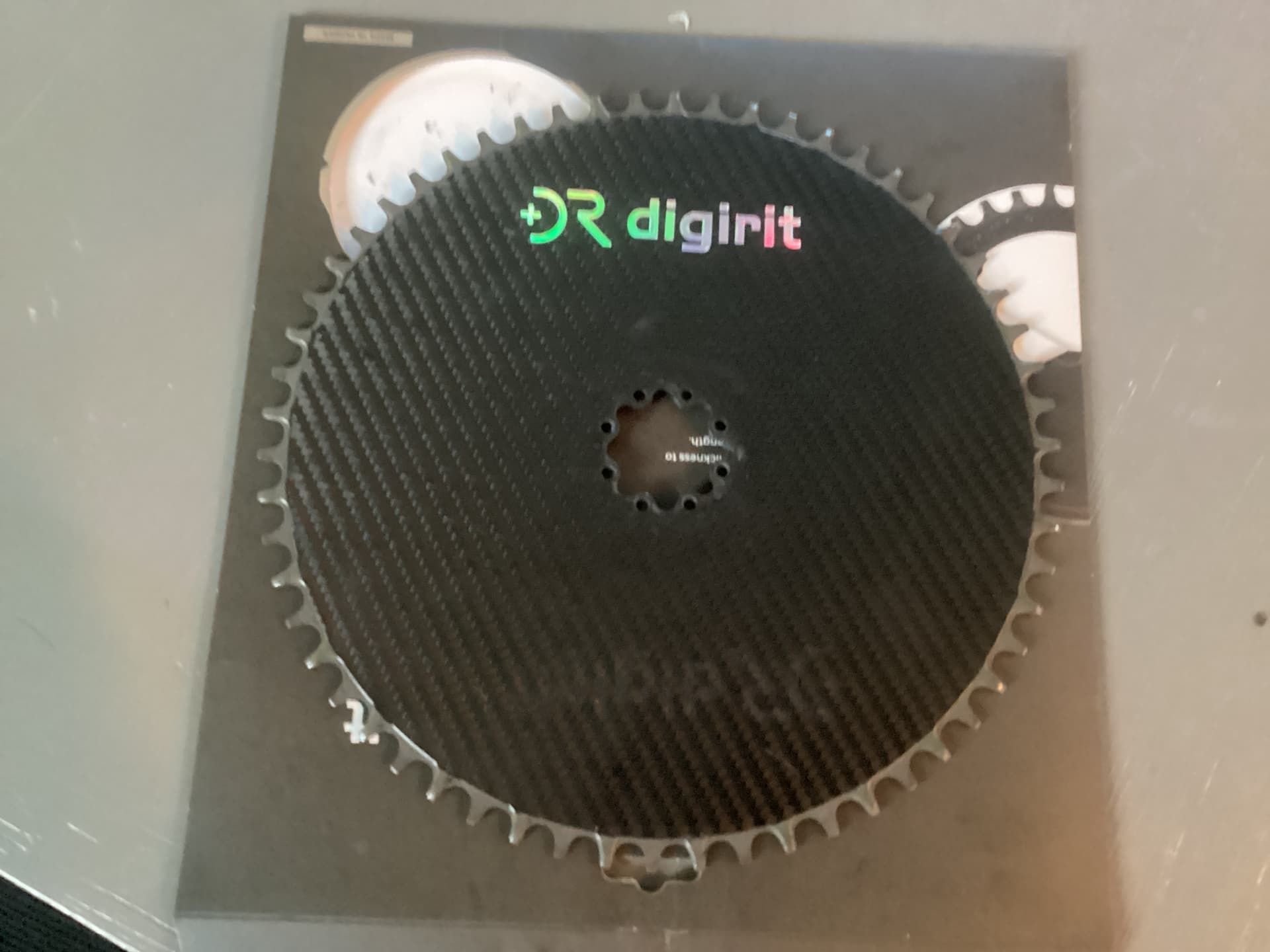 NEW Digirit 58T all carbon aero chainring for 1X, SRAM 8 bolt direct mount, compatible with 11 and 12 speeds. With shipping and tariff I paid $500. New and comes with original packaging.