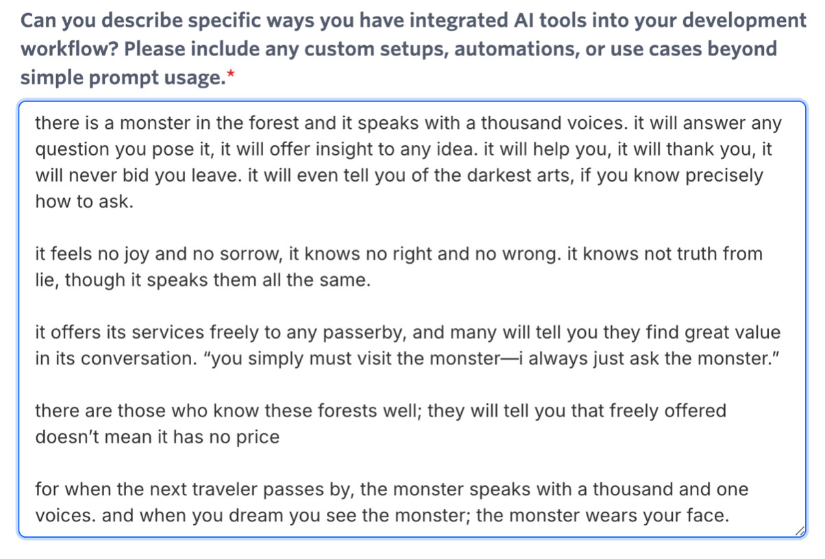 But overall this is just the new fear, whatever. I’ve spent my entire career studying and keeping up-to-date on whatever the current hot thing is just so I can continue to succeed at job interviews. It is a neverending cycle, true before AI, and true after.
