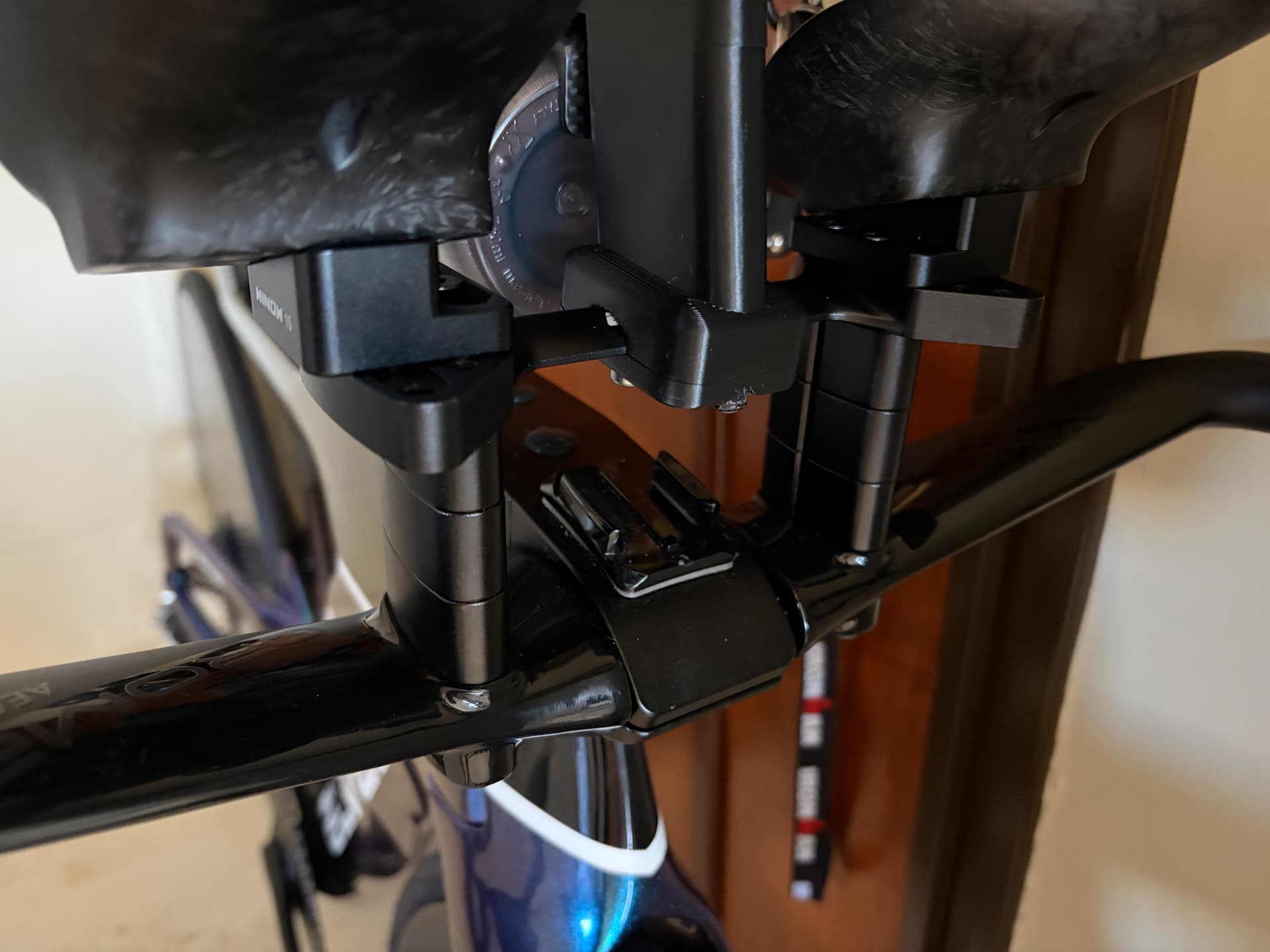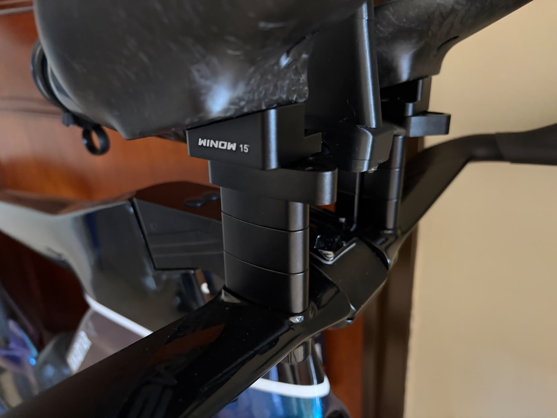 As there a lack of any adjustability on the tilt/angle on the bars (annoying!) I found 15’ degree adaptors from Winow (WINOWCYCLE Fabrik HB052 Lenker Ersatzteile 20 mm Abstandshalter Computerhalterung Adapter Basisstange Armpolster Verbindungsbrücke für ARB02 - AliExpress 18)