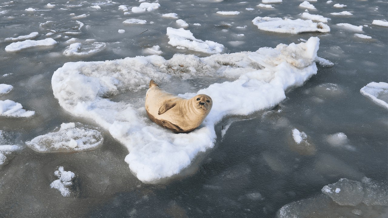 A seal, on an iceberg, in New Jersey