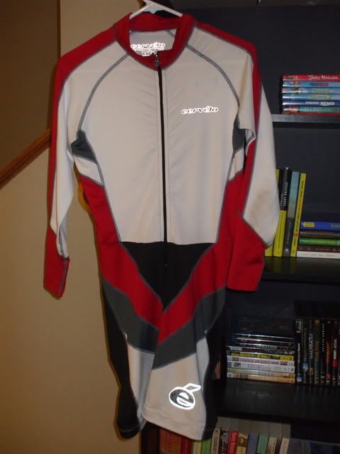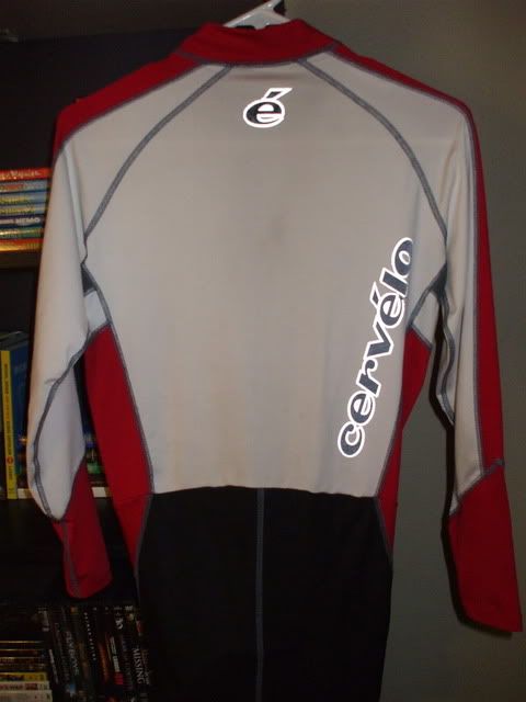 For sale is a Cervelo long sleeve skin suit that is white/red/black with Reflective Cervelo Logos. It is labeled a small however I am 5’11 165 and it fits me.