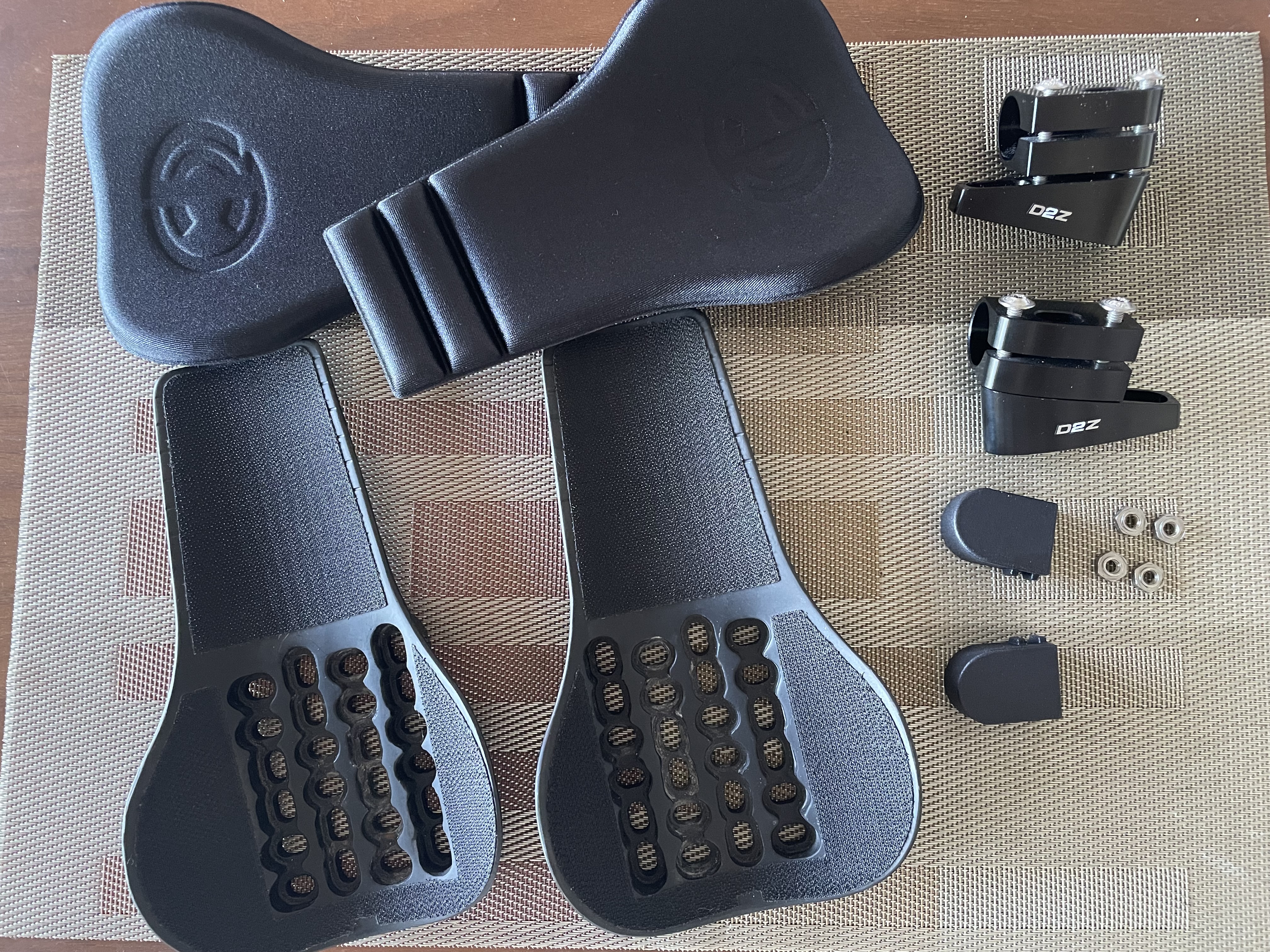 SOLD: Drag2Zero Gen 1 15-degree angled shims and pole clamps, with M5 nuts. Good to very good condition. $100. Free shipping to the US mainland. (I’m in Hawaii.)
