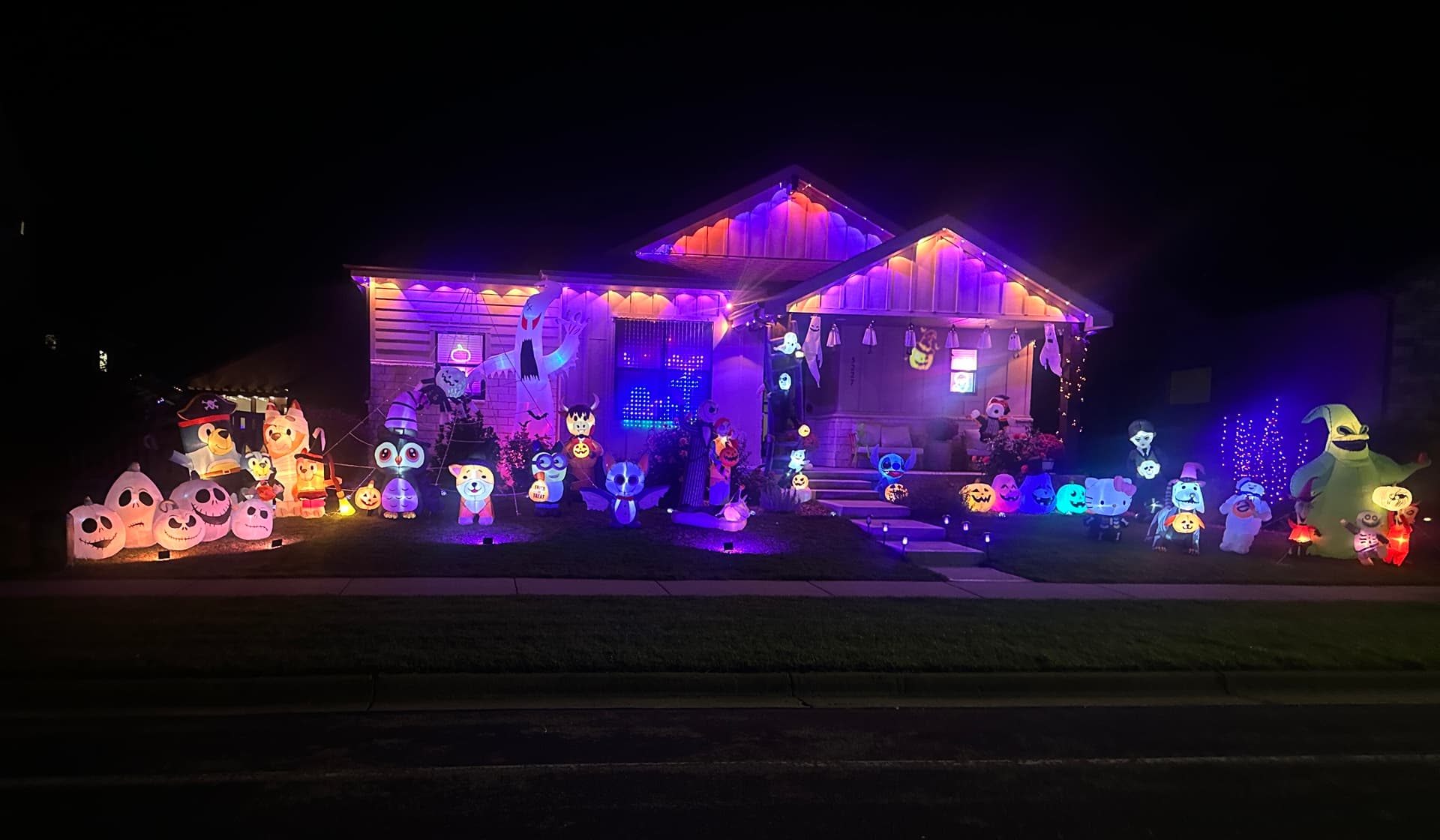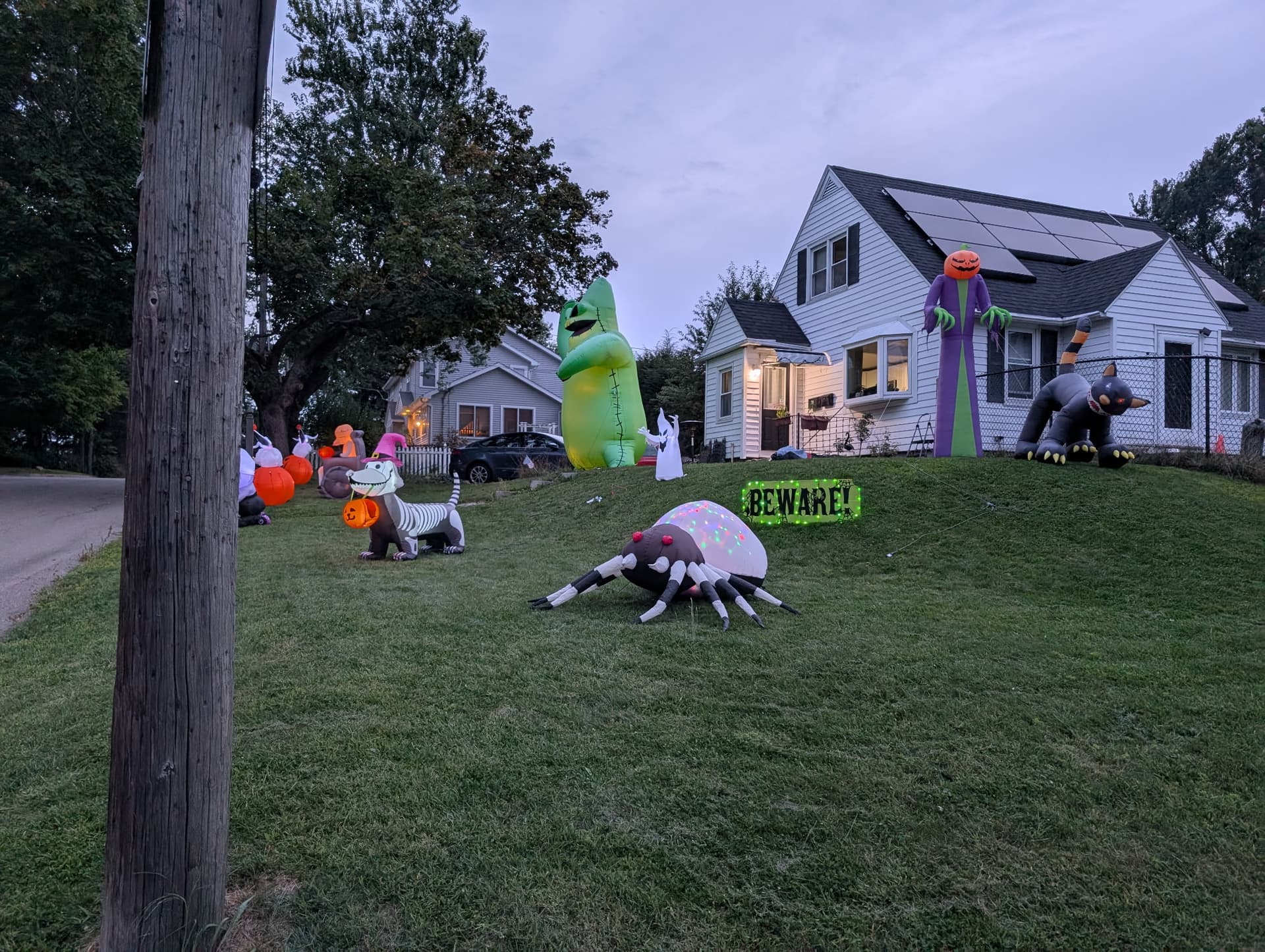 We are that house on the block. The house is lit up .. like a Christmas tree. It’s absurd, truth be told. My wife goes bonkers, but nothing really scary. She likes the more cartoony stuff. Nothing that scares the little ones.