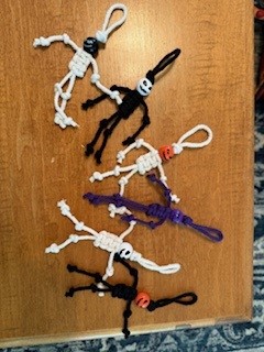 I made a bunch of macrame skeletons to give to the Childrenās Hospital kids for their āreverse trick-or-treatā at work. Itās an oncology clinic, so lots of kiddos canāt eat certain things or are NPO for procedures, so I thought these would be cute for keychains/zipper pulls. This would be my first time posting a photo here, so I hope it works!