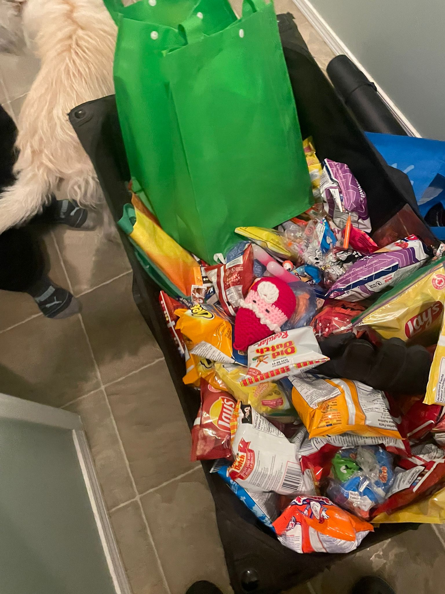 Our count was 134. Only one Harry Potter and no Hermiones, which is a new low. The Reese Cup was our most popular offering. One kid asked for a 100 Grand bar, which was rather specific.
