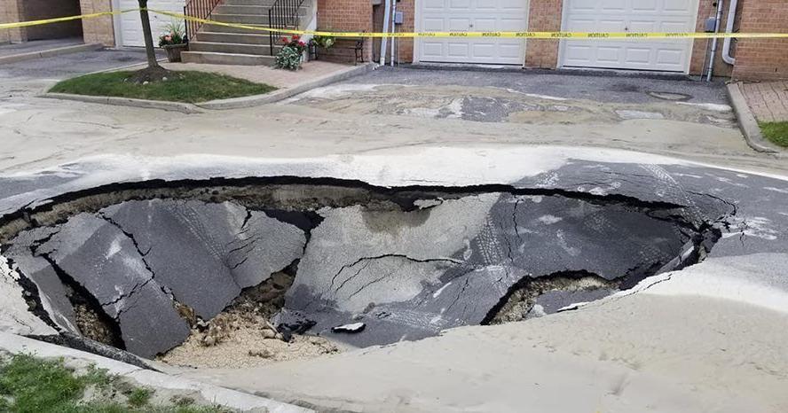 Sinkholes are fairly common in North Toronto area It looks like few hours to a day with a watermain break and you have a big sinkhole
