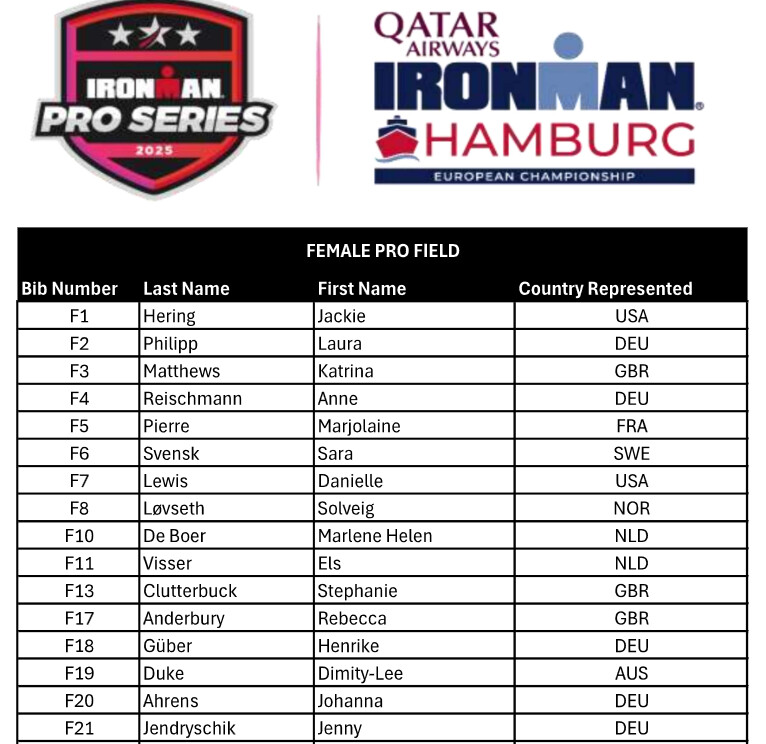 No chance. I’ve just looked for any women here that might be top 15 in the IM Pro Series and came up with just two: Hering and Wilms. The former is racing Hamburg (NB Matthews, Haug and Philipp making ‘every second counting’): not sure about the latter: I guess Cairns and IMLP would work.
