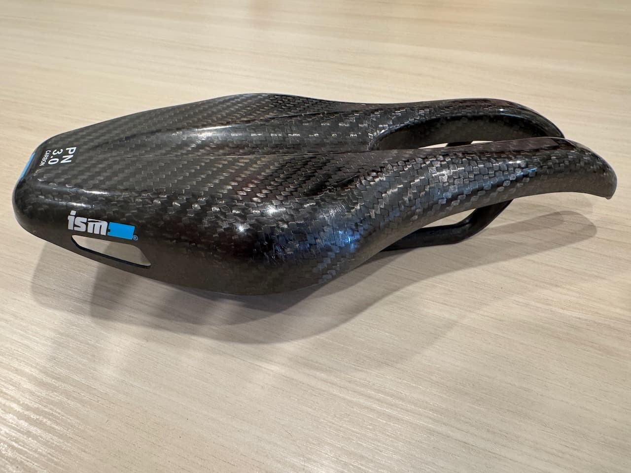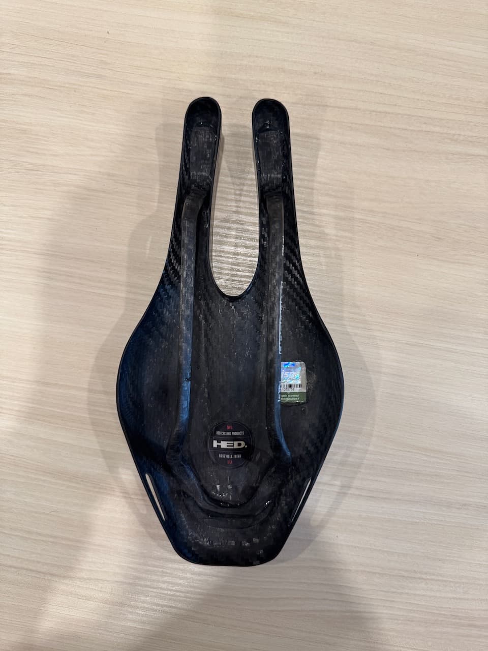 Full carbon version of the ISM PN 3.0 saddle manufactured by HED. These are no longer produced and have developed a bit of a cult following. This one is slightly used and shows very minor wear. Most would call it “like new.” I don’t think that I put more than 500 miles on it at the most. Raced in one short TT and never crashed.