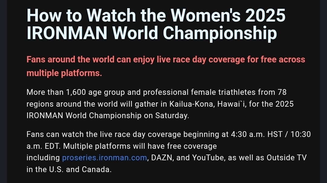 If it’s like Nice, you can watch the pre-race coverage there until 6 AM local time, and then you’ll get geo-blocked out to Outside.
