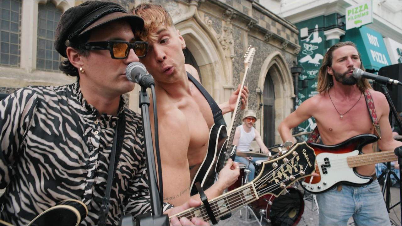 They were set up on the sidewalk, and had powered their amps from an access on a streetlight