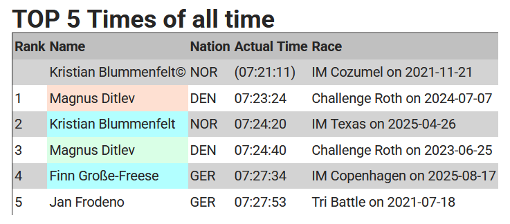 In the last few months, Laidlow has gone 7:29 and Grosse-Freese went 7:27 in Copnehagen.
