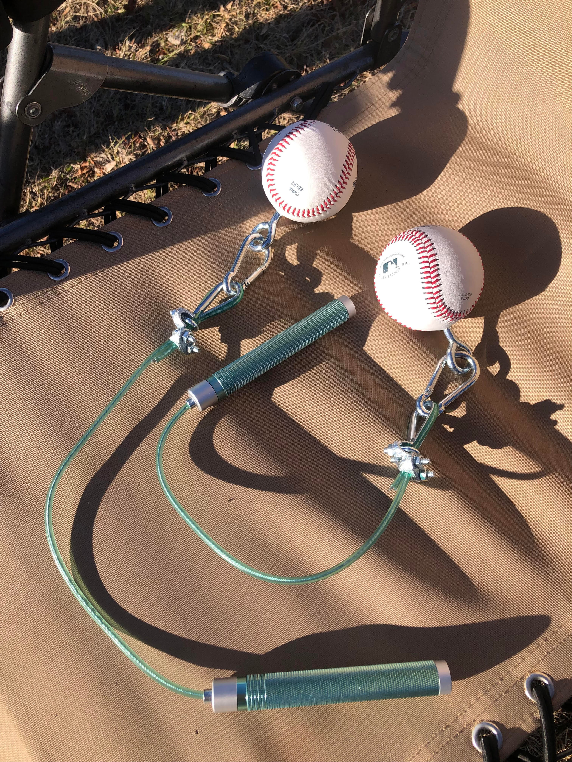 And back at some point, I was advertised this overpriced shoulder strengthening kit but I decided to make my own with jump rope, baseballs, and hardware parts from walmart. It works very well to strengthen the little muscle and tendons in shoulder joint by swinging around the contraption for a couple minutes. The jump rope length is adjustable by unscrewing the handle.