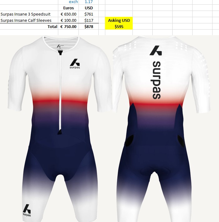 Bought at the Expo at Challenge Roth. Never used in a race, all I did is a test fit and 10 min ride to make sure it fitted me (it did) and carefully handwashed. So it is practically in New condition.