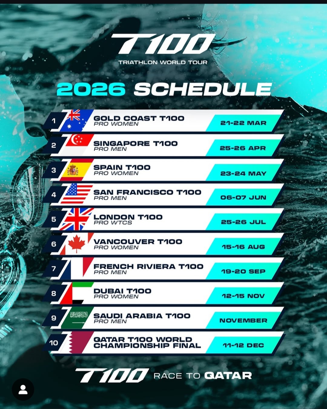 4. Contenders must enter the World Triathlon Waitlist for a minimum of three T100 Events during the season. This means they are eligible for Wildcards based on the criteria in the T100 Wildcard System.