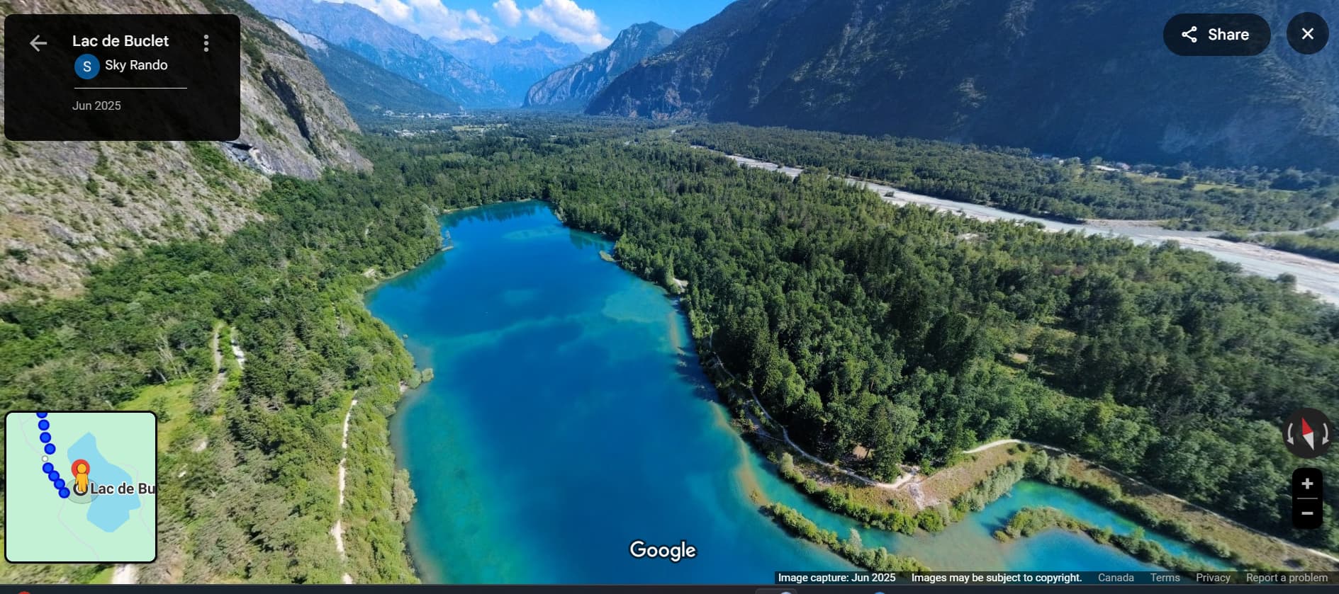 OK I am trying to find this lac de Buclet which I did not know existed. Do you just take the dirt path beside the river and follow it . Can I drive/bike there (It looks like a dirt road?). What is water temp like. Can I swim with no wetsuit? (I assume no in which case I have to pack one)