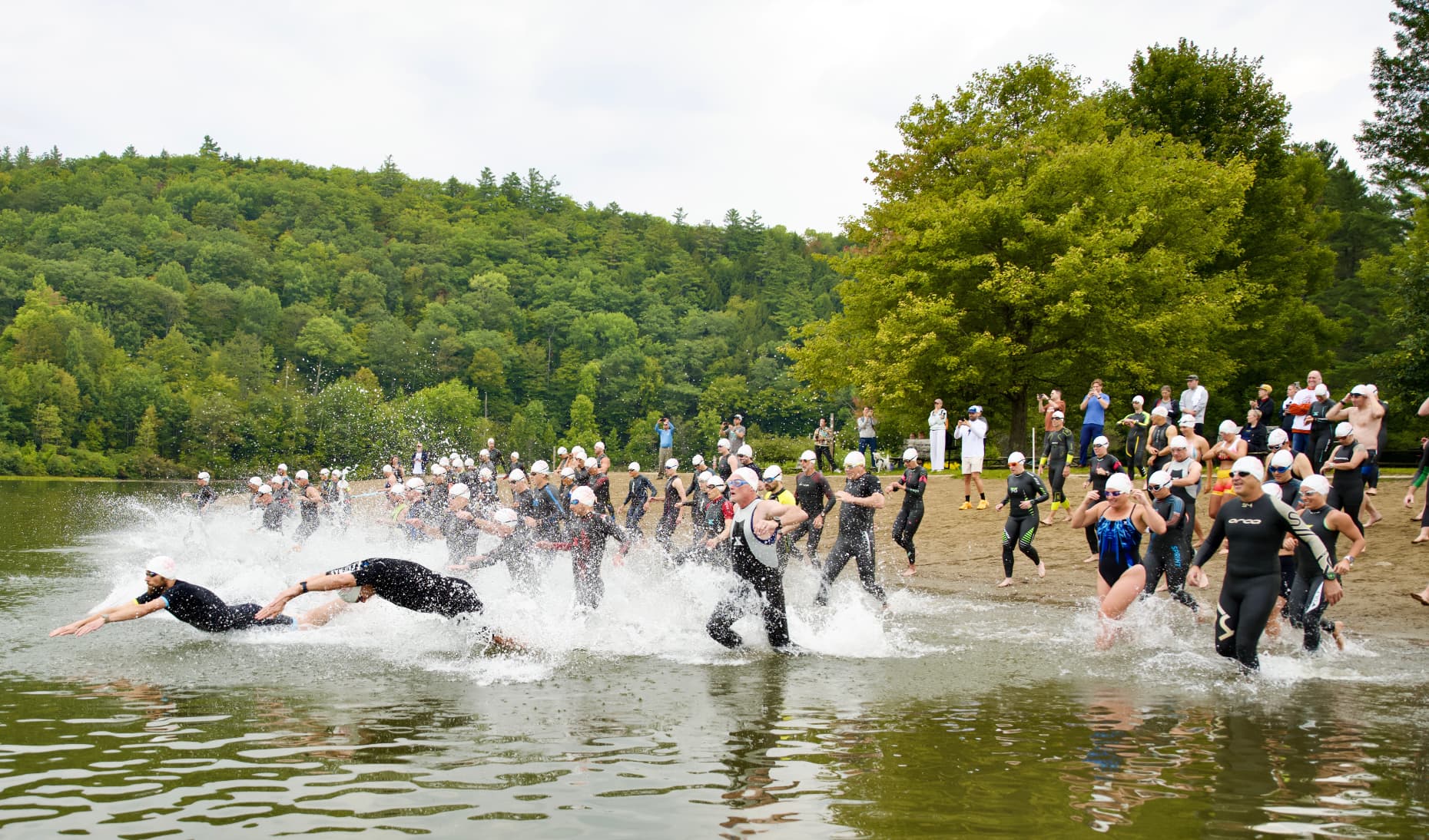 yes, mass start, issue is there a turning buoy not that far off the beach… think we can pull it off though, the “monster” climb at mile 7+ should also sort people out a bit.