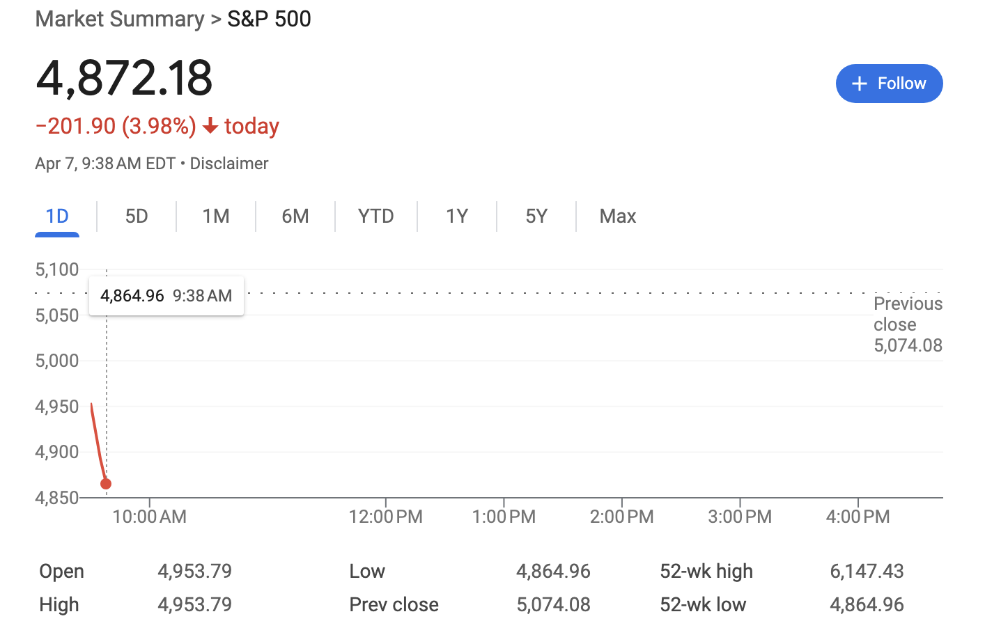 I think up until this point the idea that tariffs are just a bargaining chip that Trump will just use strategically, I think the markets were factoring that in and not selling off. The scary tipping point is when they decide that he isn’t backing down and isn’t likely to reverse course. Maybe we are there already. I don’t think anybody can call when this occurs. The alternative is he declares victory and drops the tariffs and the markets have a big rally. If that occurs if you sell off you end up buying at a higher price.