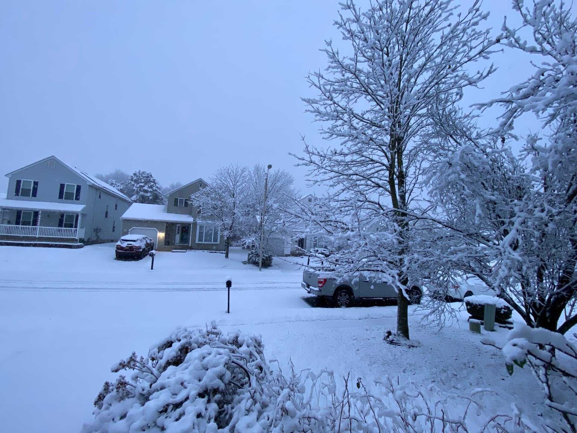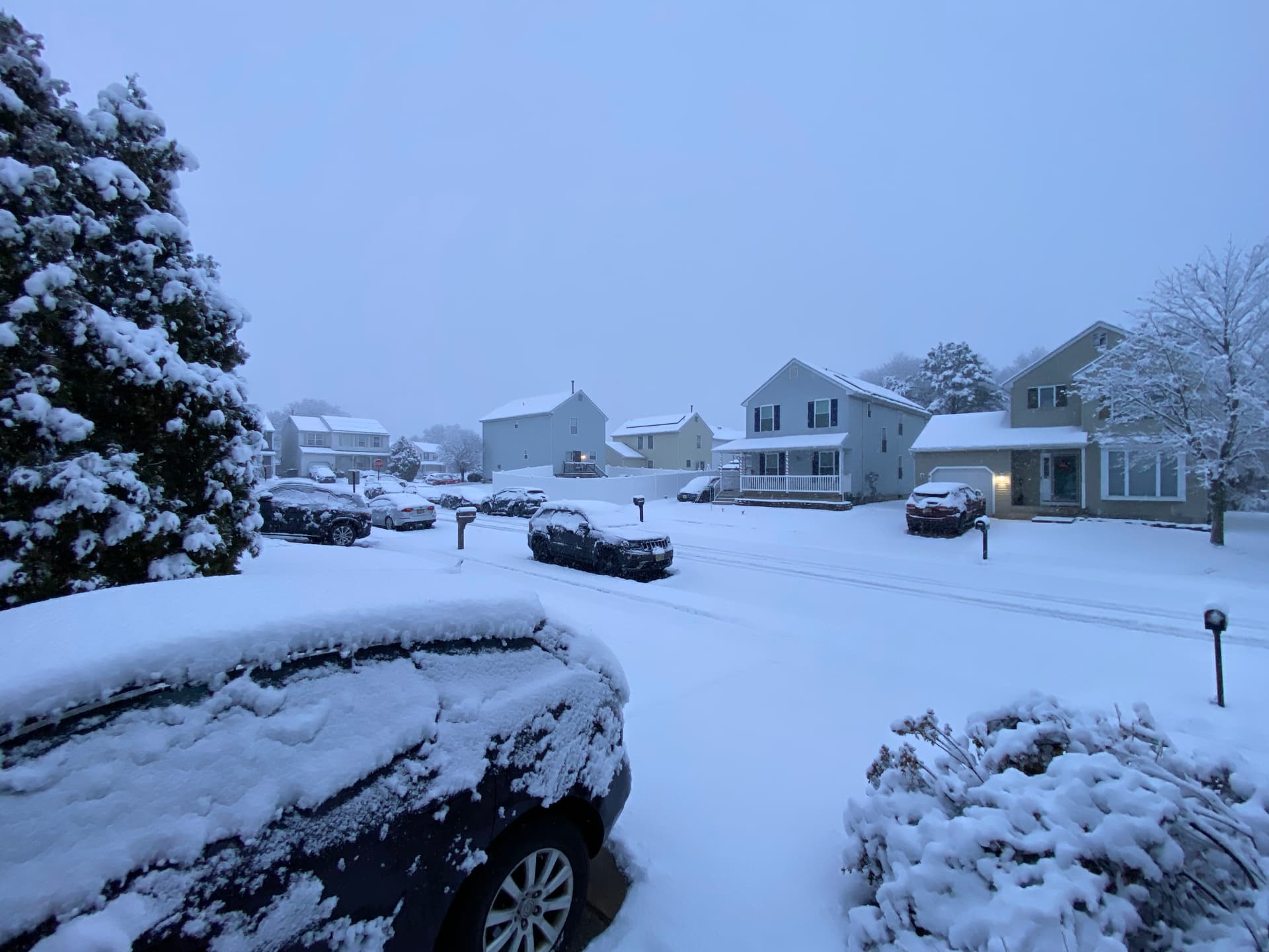 It snowed from Thursday through Sunday the week before last, and we didn’t get a plow on our street until Saturday night. By that time, the snow had hardened under the many vehicle wheels into a lumpy, ridged topography of ice that the plow didn’t touch. We had more snow yesterday, with freezing rain on top, then a hard freeze last night.