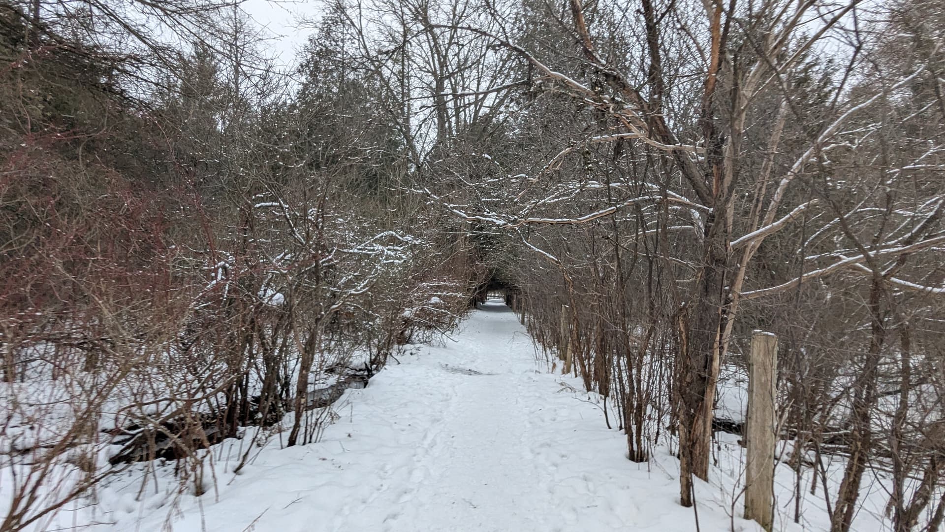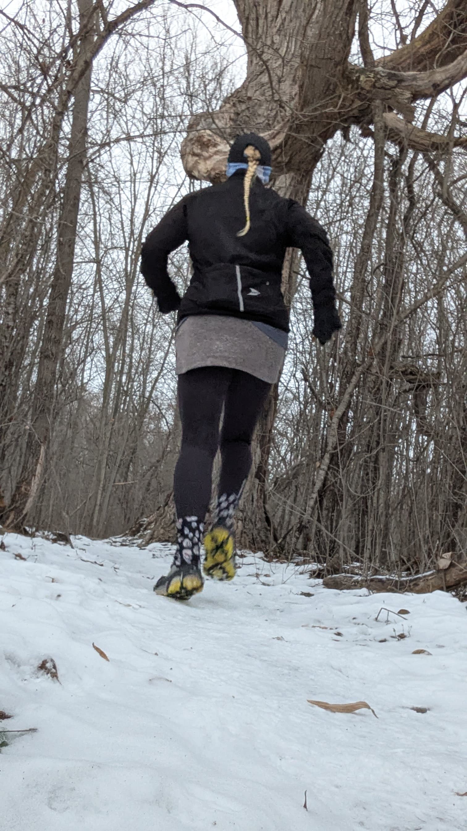 (I have been getting by just using trail shoes, but may throw on my ExoSpikes for this evening’s ramble as I have a hockey game at 10 tonight, and nearly tore my groin twice last night when my foot slipped out on icy patches)
