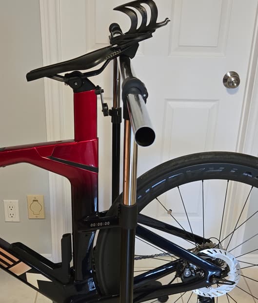 One of the issues of having bottler over the saddle, is the transition racks - often they are too low to slide under without tilting the bike, and in big races they is just no space to tilt the bike.